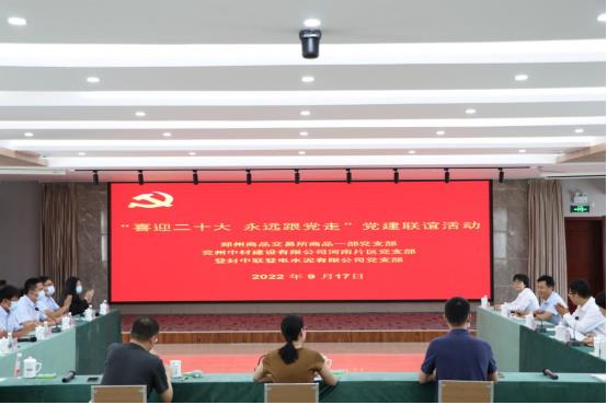 為進一步深化黨建聯建共建,凝聚發展合力,9月17日上午,河南片區黨支部代表赴登封中聯登電水泥有限公司與登封中聯登電水泥黨支部、鄭州商品交易所商品一部黨支部開展黨建聯誼活動。