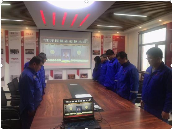 上午10時(shí),在低回的哀樂(lè)聲中,白坪分公司全體員工集體默哀,表達(dá)對(duì)江澤民同志的崇高敬意和深切緬懷。