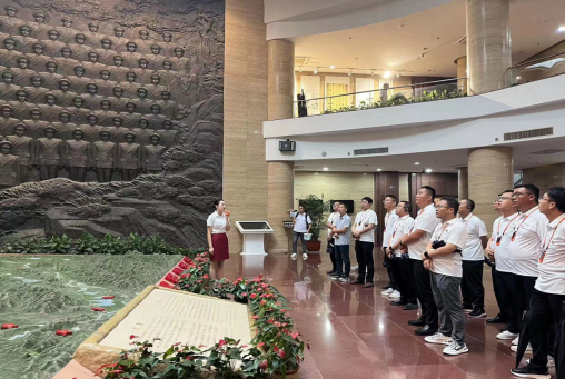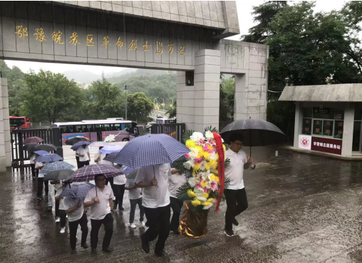 29日,共同前往紅色大別山,在鄂豫皖蘇區首府革命烈士紀念館中,以傾盆大雨寄哀思,拾級而上,同志們身著白色上衣整齊列隊肅立在革命烈士紀念碑廣場,面朝莊嚴肅穆的紀念碑,在宋道明同志的帶領下,全體低頭默哀,沉痛哀悼英勇犧牲的烈士,并共同向烈士敬獻花籃,同志們莊重的舉起右手,面對鮮紅的黨旗,“我志愿加入中國共產黨,擁護黨的綱領……永不叛黨。”在鏗鏘有力的誓詞中,重溫入黨初心,同志們初心受到洗禮,理想信念更加堅定。